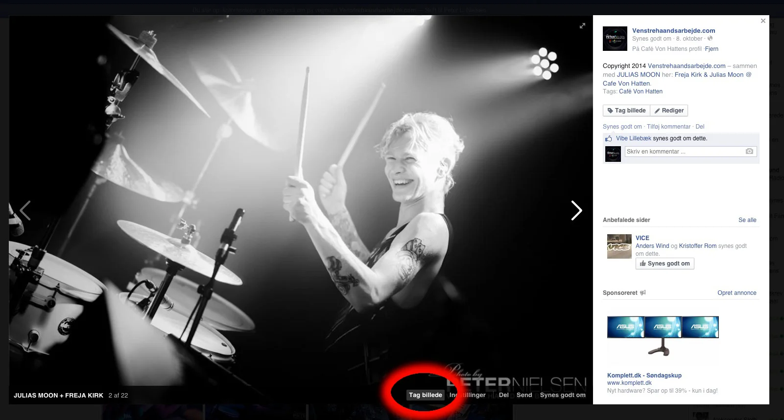 Tag dig selv eller andre på billederne ved at føre musen henover billedet og vælg "Tag billede".